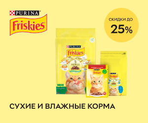 | Описание акции: | Скидки до 25% на сухие и влажные корма для котов Purina Friskies®!![]() | ||||||