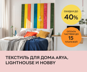 | Описание акции: | Скидки до 40% на модный текстиль для дома ARYA, LightHouse и Hobby + оплата частями до 15 платежей!![]() | ||||||