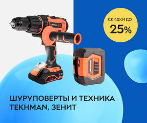| Описание акции: | Скидки до 25% на шуруповерты и измерительную технику Tekhman и Зенит!![]() | ||||||