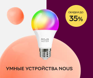 | Описание акции: | Скидки до 35% на устройства для умного дома Nous!![]() | ||||||