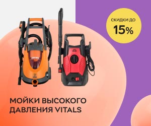 | Описание акции: | Скидки до 15% на мойки высокого давления Vitals!![]() | ||||||