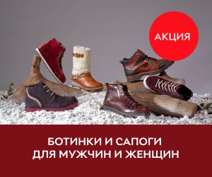 | Описание акции: | Мужские и женские ботинки и сапоги! Дополнительная скидка 20% при покупке от 2 пар!![]() | ||||||