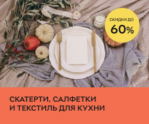 | Описание акции: | Скидки до 60% на скатерти, салфетки и текстиль для кухни!![]() | ||||||