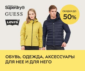 | Описание акции: | Скидки до 50% на женскую и мужскую обувь, одежду, аксессуары Levi's, Guess, Superdry!![]() | ||||||