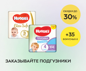 | Описание акции: | Скидки до 30% на подгузники Huggies + возвращаем 35 грн бонусами!![]() | ||||||