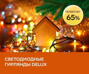 | Описание акции: | Скидки до 65% на светодиодные гирлянды DeLux!![]() | ||||||
