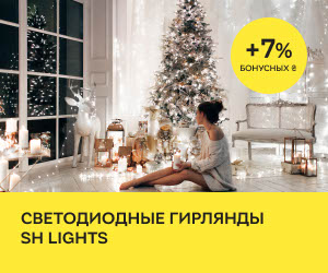 | Описание акции: | При покупке светодиодных гирлянд SH Lights возвращаем 7% от суммы на бонусный счет!![]() | ||||||