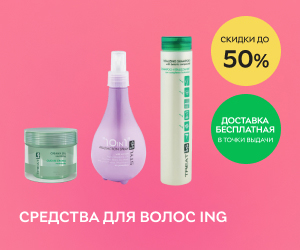 | Описание акции: | Скидки до 50% на средства по уходу за волосами ING!![]() | ||||||
