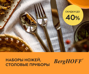 | Описание акции: | Скидки до 40% на наборы ножей и столовые приборы Berghoff!![]() | ||||||