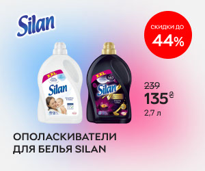 | Описание акции: | Скидки до 44% на ополаскиватели и кондиционеры для белья Silan!![]() | ||||||