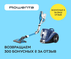 | Описание акции: | Покупайте пылесосы Rowenta, оставляйте отзыв в карточке товара и мы вернем 300 бонусных гривен на ваш счет!![]() | ||||||