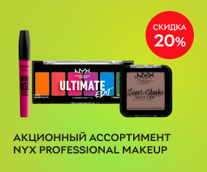 | Описание акции: | Покупайте акционный ассортимент NYX Professional Makeup со скидкой 20%!![]() | ||||||