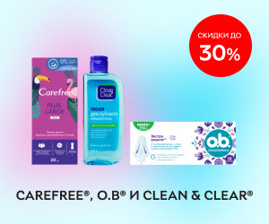 | Описание акции: | Скидки до 30% на средства для личной гигиены и ухода за кожей Carefree®, O.B®, Clean & Clear®. Защита и уход на все 100%!![]() | ||||||