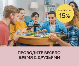 | Описание акции: | При покупке настольных игр на сумму от 499 грн − скидка 10%, от 799 грн − скидка 15%!![]() | ||||||