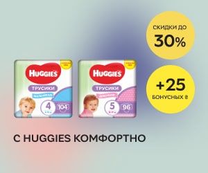 | Описание акции: | Заказывайте подгузники Huggies со скидками до 30% и получайтк 25 грн на бонусный счет!![]() | ||||||