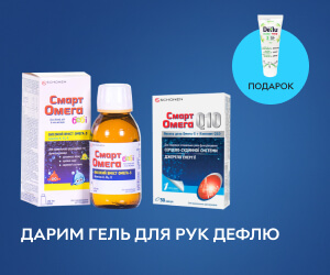 | Описание акции: | При покупке Смарт Омега - антисептический гель Дефлю Защита Руки в подарок!![]() | ||||||