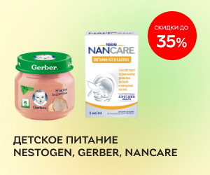 | Описание акции: | Скидки до 35% на детское питание Nestogen, Gerber, Nancare!![]() | ||||||