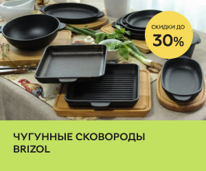 | Описание акции: | Скидки до 30% на чугунные сковороды Brizoll!![]() | ||||||