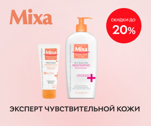 | Описание акции: | Скидки до 20% на средства по уходу за телом Mixa!![]() | ||||||