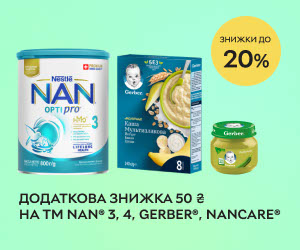 | Описание акции: | Скидки до 20% на детское питание ТМ NAN®3, 4, Gerber®, NANCARE® и дополнительная скидка 50 грн. при заказе от 699 грн.![]() | ||||||