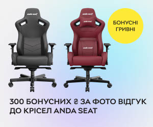 | Описание акции: | Дарим 300 бонусных гривен за фото отзыв к геймерским креслам Anda Seat!![]() | ||||||