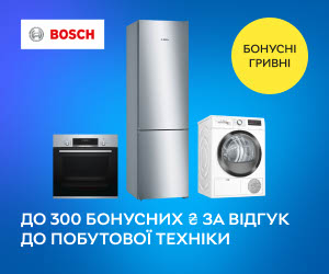 | Описание акции: | Начисляем до 300 бонусных гривен за отзыв к бытовой техники Bosch и Siemens!![]() | ||||||