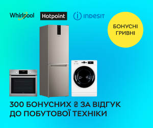 | Описание акции: | Начисляем до 300 бонусных гривен за отзыв к бытовой технике Whirlpool, Indesit и HotPoint!![]() | ||||||