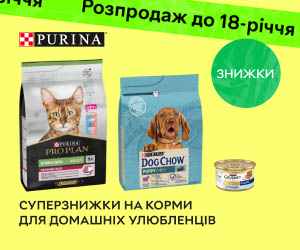 Описание акции: | Распродажа к 18-летию Rozetka! Суперскидки на корм для домашних животных Pro Plan®, Cat Chow®, Dog Chow®, Gourmet®, Purina ONE®, Felix®, Friskies®!![]() | ||||||