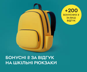 | Описание акции: | Покупайте школьные рюкзаки, оставляйте отзыв, и мы вернем 200 бонусных гривен на ваш счет!![]() | ||||||