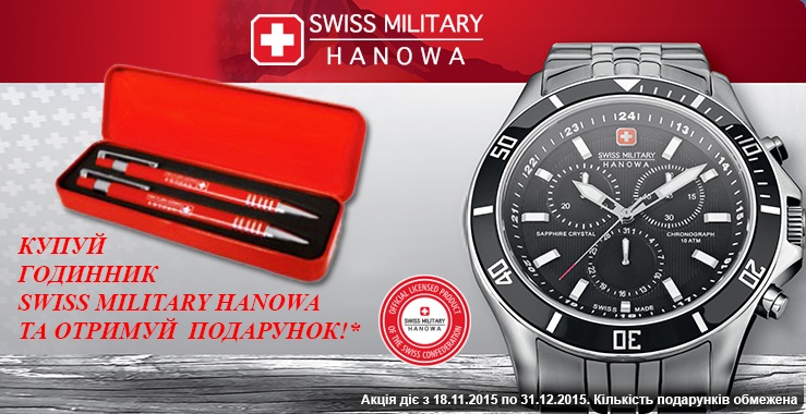 Описание акции: | Купуйте годинник ТМ Swiss Military-Hanowa в інтернет-магазині «Секунда» та отримуйте подарунок - набір ручка та олівець!![]() | ||||||