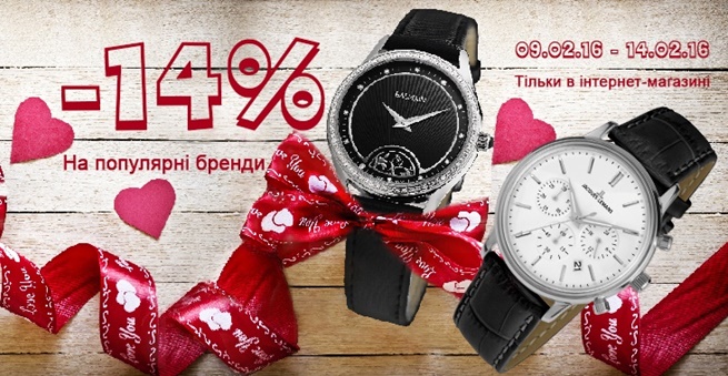 З нагоди свята всіх закоханих з 09 лютого по 14 лютого в ІНТЕРНЕТ-МАГАЗИНІ діє знижка 14% на популярні бренди!