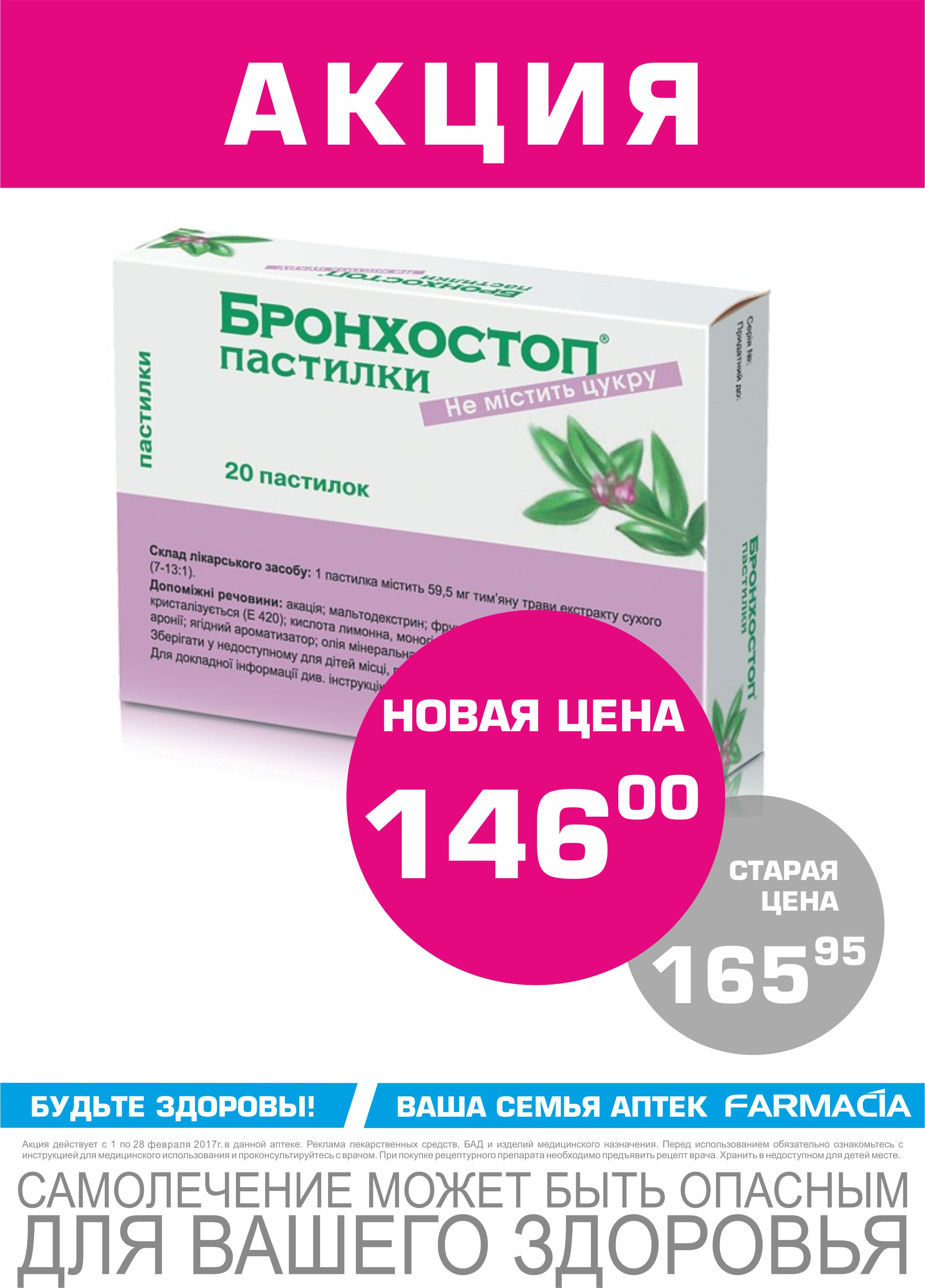 | Описание акции: | Цена февраля! Только выгодные предложения в Семье Аптек FARMACIA ![]() ![]() ТРЦ Лавина, ТЦ Аркадия, ТЦ Аркадия-Осокорки, ТРЦ АРТМОЛЛ, ТРЦ Сильвер Бриз, ТРЦ Скай Молл | ||||||