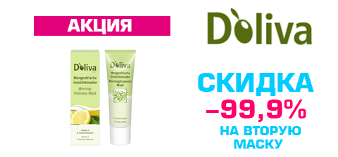 | Описание акции: | ![]() При покупке одной, из слудующих ниже, масок от ТМ DOLIVA DOLIVA Маска д/лица вечерняя освежающая 30мл DOLIVA Маска д/лица против морщин 30мл DOLIVA Маска д/лица успокаивающая 30мл DOLIVA Маска д/лица утренняя свежесть 30мл Любую вторую маску Вы сможете приобрести со скидкой 99,9% !!! | ||||||