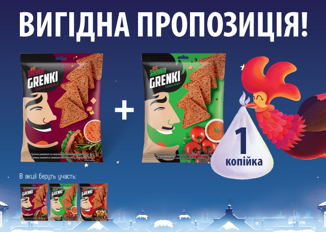 | Описание акции: | ![]() Акція від ТМ Snekkin З 19 січня по 1 лютого 2017 року в супермаркетах «Сільпо» проводиться акція від ТМ Snekkin. Придбайте 1 будь-яку пачку житніх грінок ТМ Snekkin (70 г/уп.) та візьміть 1 будь-яку пачку житніх грінок ТМ Snekkin (70 г/уп.) лише за 1 копійку! Акція діє в супермаркетах «Сільпо» згідно з адресною програмою акції за умови наявності в асортименті акційного товару. Запас товару обмежений. | ||||||