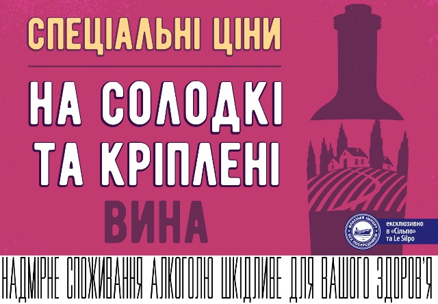 | Описание акции: | Акція на солодкі та кріплені вина! Тільки зараз, з 2 до 15 лютого 2017 року включно, купуйте з приємними знижками якісні кріплені вина, херес, портвейн та марсалу, а також обрані солодкі вина в супермаркетах «Сільпо» та делікатес-маркетах Le Silpo, які Власний імпорт обрав і привіз для вас з європейських країн – лідерів виноробства. ![]() | ||||||