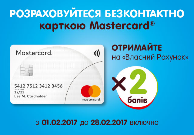| Описание акции: | Розраховуйтеся безконтактно карткою Masterсard – отримуйте ×2 балів на «Власний Рахунок»! З 1 по 28 лютого 2017 року включно для учасників програми «Власний Рахунок» у супермаркетах «Сільпо» міст Дніпро, Київ, Львів, Одеса, Харків діє акція: розраховуйтеся за покупки безконтактно карткою Masterсard – отримуйте Х2 балів на «Власний Рахунок»! ![]() | ||||||