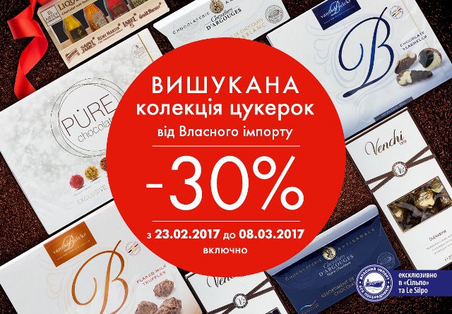 | Описание акции: | Вишукана колекція цукерок від Власного імпорту![]() Насолоджуйтесь улюбленими смаками цукерок від провідних європейських виробників зі знижкою 30%. Обирайте: вишуканий бельгійський шоколад з праліне, легендарні цукерки у вигляді шоколадно-білих мушель або кремово-ніжні трюфелі. Життя надто стрімке, щоб відкладати задоволення на потім. | ||||||