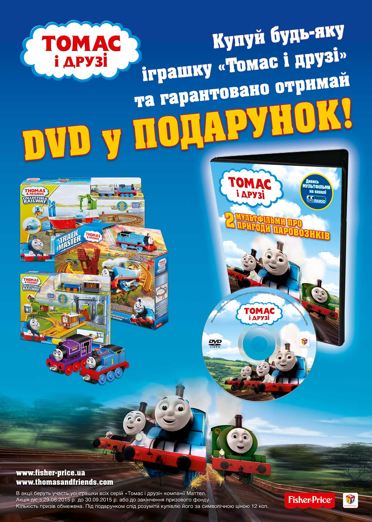У вересні купуючи будь-яку іграшку «Томас і друзі», гарантовано отримайте DVD з мультфільмами у подарунок!