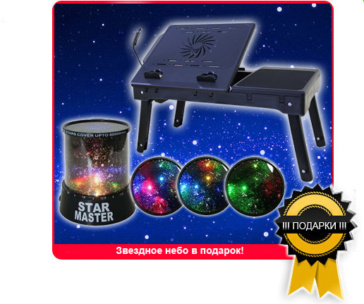 Описание акции: | Акция! С 4 июля каждый покупатель столика для ноутбука 17 " UFT T8 получает в подарок проектор звездного неба "Star Master"! ![]() | ||||||