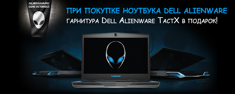 Каждый покупатель акционной модели ноутбука Dell Alienware получает фирменную гарнитуру в подарок!