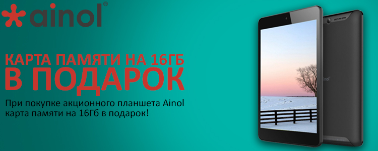 При покупке акционной модели планшета Ainol гарантированно получи карту памяти на 16ГБ в подарок!