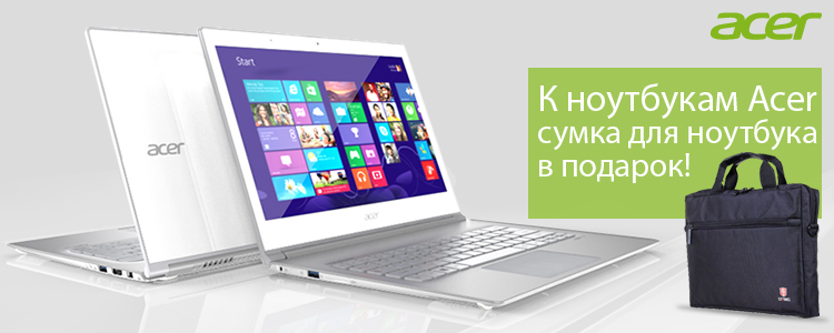 При покупке акционной модели ноутбука Acer гарантировано сумка в подарок!