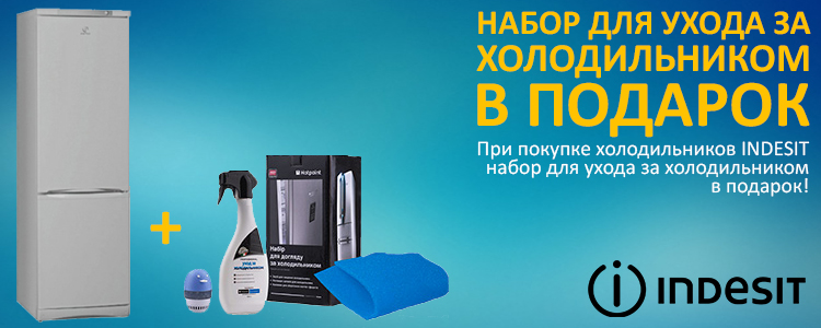 При покупке акционной модели холодильника INDESIT гарантировано набор для ухода за холодильником в подарок!