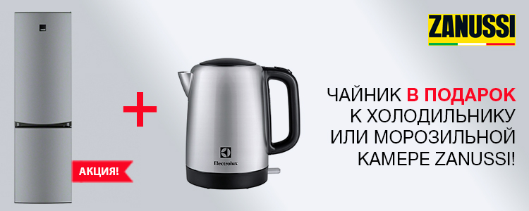 | Описание акции: | К холодильнику или морозильной камере ZANUSSI –электрочайник в подарок!![]() При покупке акционной модели холодильника или морозильной камеры ZANUSSI гарантировано электрочайник в подарок! | ||||||