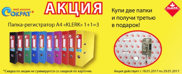 | Описание акции: | 1+1=3 на архивные папки «KLERK» различной вместительности и различного дизайна![]() | ||||||