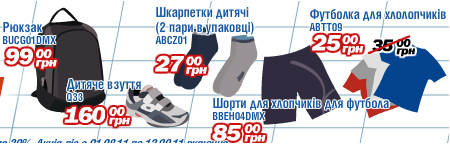 Список магазинов: | СПОРТМАСТЕР, УНИВЕРМАГ УКРАИНА | ||||||