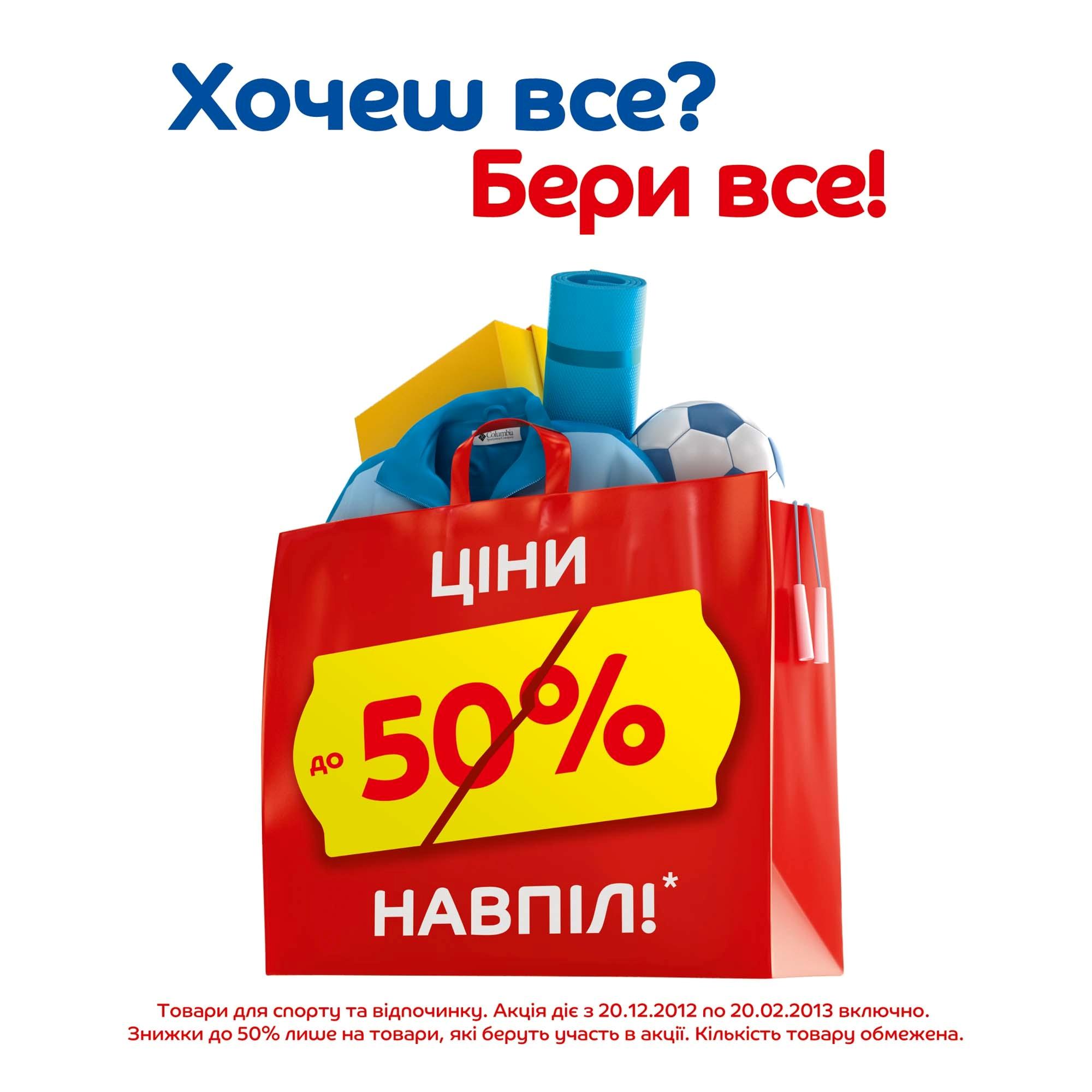 Описание акции: | Новорічні знижки до 50% в магазині Спортмастер. Светр - 250 грн Штани - 350 грн Кросівки - 490 грн ![]() | ||||||