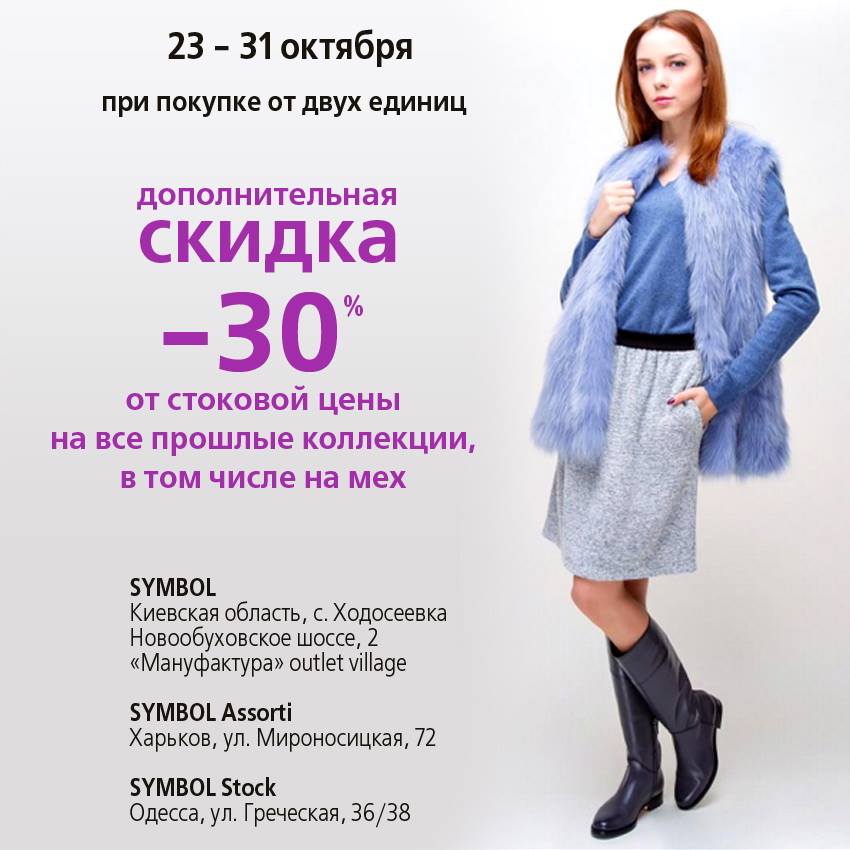 Акция! В стоковых бутиках Symbol -30% дополнительно на все прошлые коллекции, в том числе на меховые изделия при покупке 2-х единиц и более