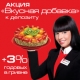 Описание акции: | Откройте депозит «Срочный» в период действия Акции на 3, 6 и/или 13 месяцев на сумму от 1 000 гривен, 200 долларов США/евро и получите гарантированную надбавку к депозиту! Акция проходит с 04 января по 31 марта 2012 года в отделениях VAB Банка. Гарантированный приз Надбавки к ставке по депозиту: +3% в гривне; +1,5% в долларах США/евро. На первый месяц трехмесячного вклада На первые три месяца шестимесячного вклада На первые шесть месяцев тринадцятимисячного вклада | ||||||