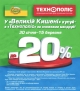 Описание акции: | Тільки тепер, зробивши покупку на суму від 99 грн. у супермаркетах мережі "Велика Кишеня", кожний покупець отримує чек на знижку до -20% в магазинах Технополіс *: -3% на мобільні телефони; -5% на аудіо-, відео-, пк, фото та побудову техніку; -20% на аксесуари. * даний акційний чек не розповсюджується на акцйні позиції та покупку в кредит( крім стандартного кредиту). Знижковий чек має одноразову дію та має бути вилучений касиром після реалізаціїї. | ||||||
